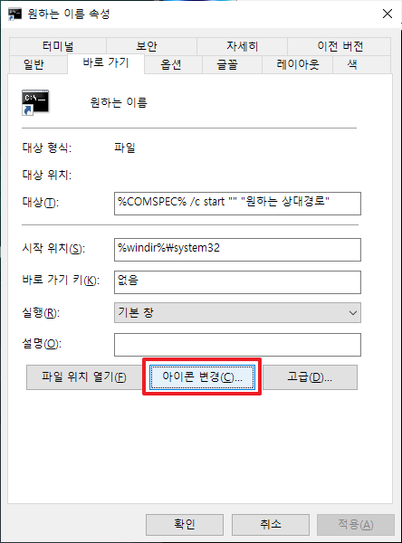 .lnk 파일이므로 아이콘도 변경 가능합니다.