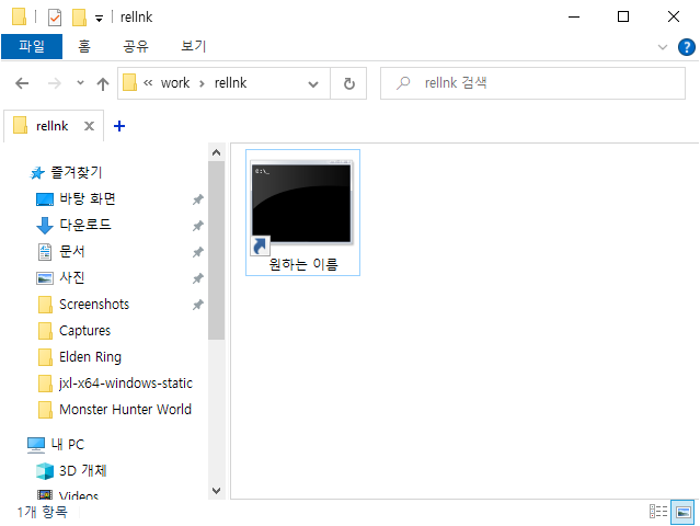 이번에는 .cmd 파일이 아닌, 정말로 .lnk 파일로 상대경로 단축아이콘을 만드는 법입니다.