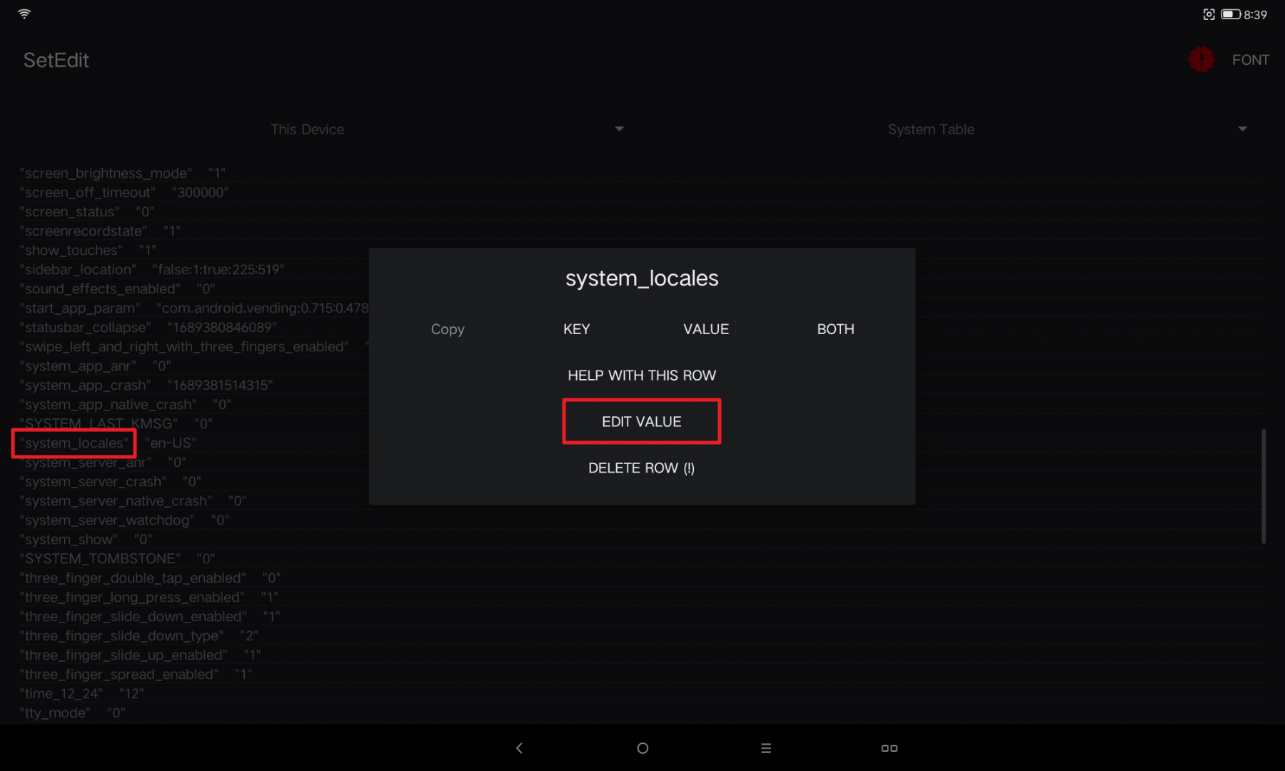 Languages 들어가 简体中文 한 번 선택 후 English로 원복 (system_locales 설정 활성화)
