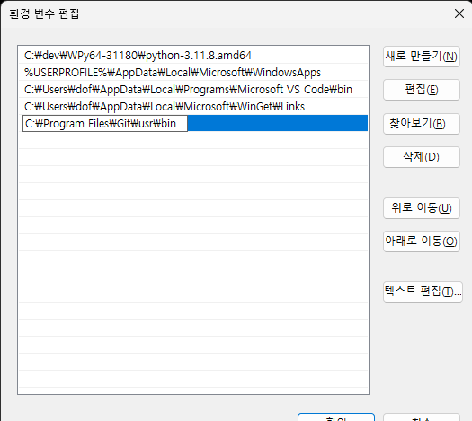 '새로 만들기'를 눌러 목록 제일 아래에 아래 경로를 추가한다.